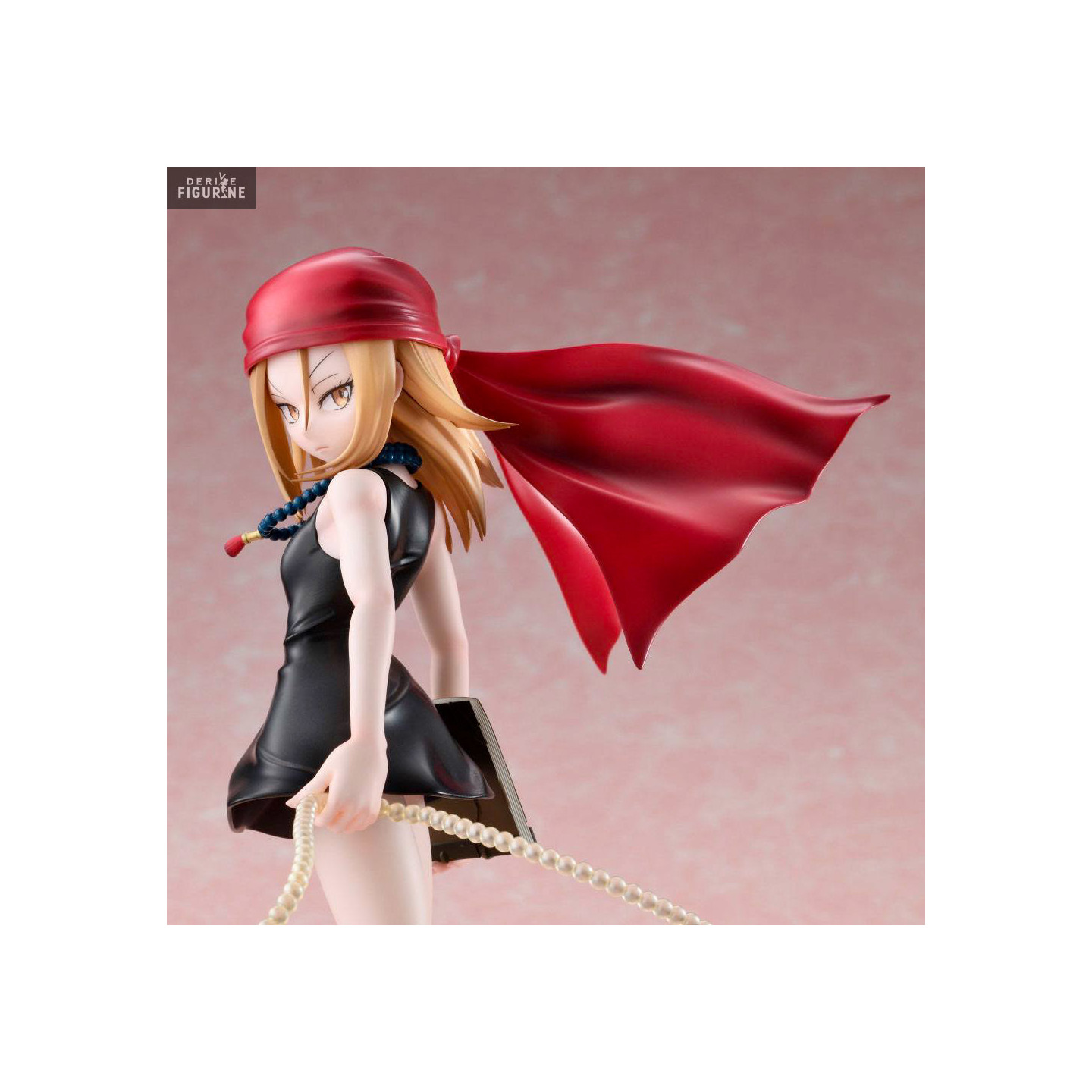 Anna Kyoyama de la série Shaman King est une Itako et elle rêve de devenir une personnalité dans le monde des Shamans. Elle possède un collier de 1 080 perles que l'ont peut apercevoir qui lui permet de contrôler des fantômes appelés Shikigamas ; Zenki et Gôki. On la retrouve ici dans une pose donnant un effet de mouvement à son collier et ses vêtements. Elle est prête à en découdre et le fait ressentir avec un regard très sérieux. Elle est sur un petit socle en effet pavés et deux pouces d'herbes.