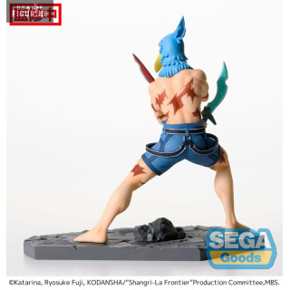 La figurine Sunraku de la collection Luminasta est un superbe modèle représentant le personnage principal de "Shangri-La Frontier." Cette figurine capture parfaitement l'apparence de Sunraku, un adolescent mince aux cheveux bleus et aux yeux bleus. Dans le jeu, Sunraku porte un avatar unique, et la figurine reflète cela avec précision. Il est représenté comme un jeune homme athlétique à moitié nu, portant un short bleu avec une ceinture assortie. Son look est complété par son emblématique casque en forme d'oiseau bleu avec un bec jaune, qui couvre son visage. La figurine est également fidèle aux détails du personnage, y compris la Marque de Lycaon, la cicatrice maudite qui apparaît sur son torse et sa jambe après sa défaite contre Lycaon. Cette marque l'oblige à jouer à moitié nu, ce qui ajoute un élément unique à sa conception. Pour les fans de "Shangri-La Frontier" et de Sunraku, cette figurine de collection est un must-have pour afficher ce personnage emblématique dans toute sa gloire dans votre collection.