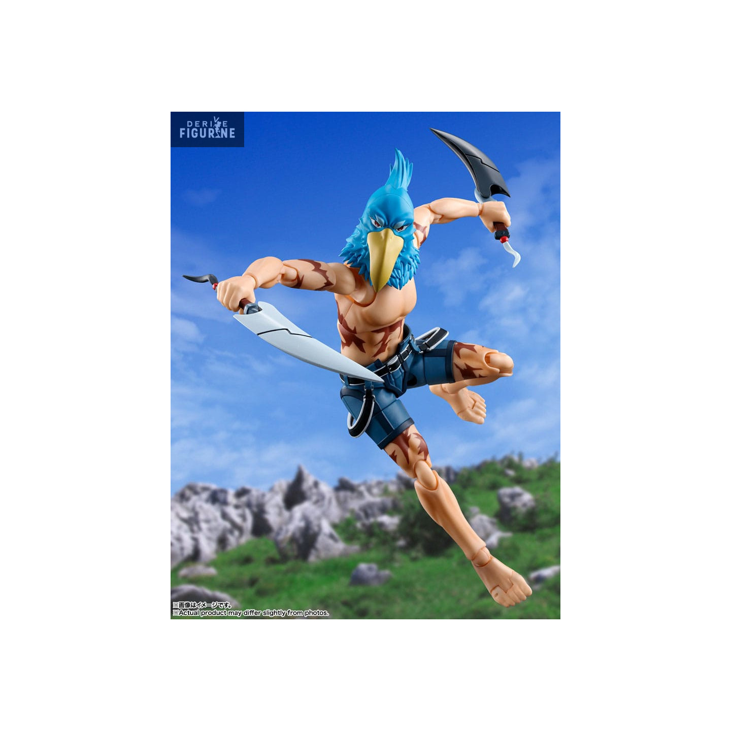 Figurine officielle de Sunraku en PVC mesurant environ 15 centimètres de haut. Elle est issue de la collection S.H. Figuarts. Le fabricant est Bandai.