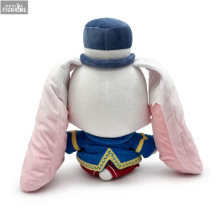 Emul, la mascotte attachante de Shangri-La Frontier, arrive en peluche officielle ! Assise dans une posture charmante, cette petite lapine arbore son élégant costume de gentleman : un haut-de-forme bleu nuit posé de travers, un monocle doré soigneusement brodé, et un ensemble veste bleue et jupe rouge, relevé d’une écharpe rouge vif. Ses longues oreilles tombantes, teintées d’un rose délicat à l’intérieur, encadrent un visage souriant aux grands yeux rouges brodés, reflétant toute sa malice et sa candeur.