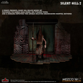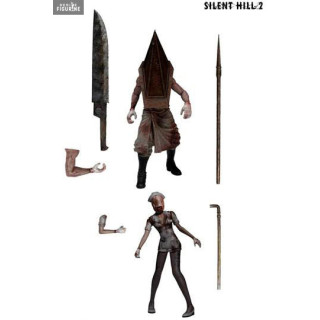 Si vous avez adoré Silent Hill 2, accrochez-vous bien car nous avons un super pack pour vous. Il contient non seulement Red Pyramid Thing et Bubble Head Nurse avec des accessoires pour chacun, mais aussi un décor double face pour les exposer.