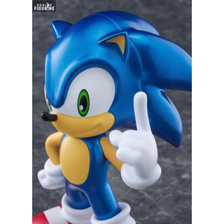 Figurine officielle de Sonic, Metallic en PVC mesurant environ 15 centimètres de haut. Elle est issue de la collection Sofbi. Le fabricant est Bellfine.