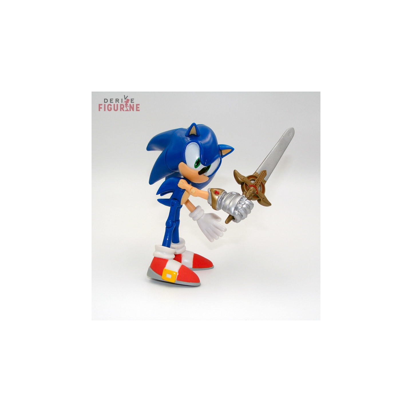 Figurine d'occasion et officielle de Sonic en PVC d'environ 14 centimètres de haut. Elle est articulée et a tous ses accessoires, à savoir son épée. Il s'agit d'un objet d'occasion en parfait état. Le fabricant est Jazwares, vendu avec boîte en assez mauvais état.