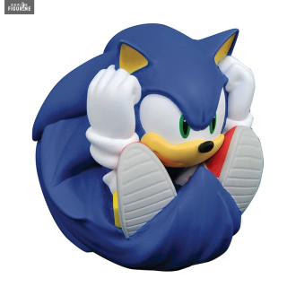 Figurine tirelire officiel de Sonic The Hedgehog de 14 centimètres de haut. Le fabricant est Diamond Select Toys.