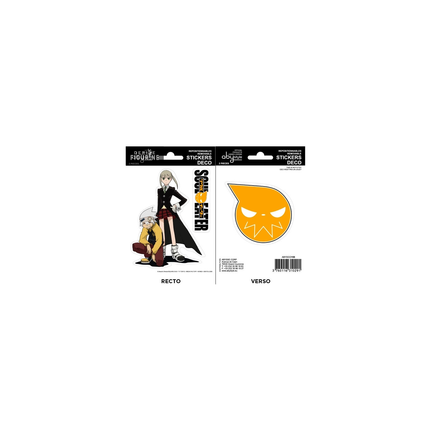 Vous avez donc une grand sticker de Maka aux côtés de Soul dans sa forme humaine, ainsi que le logo qui représente la tête de Soul de couleur orange. Voilà de quoi personnaliser vos cahiers, vos meubles et même vos murs et bien d'autres choses encore.