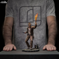 Figurine officielle de Indiana Jones en résine mesurant environ 26 x 13 x 16 centimètres de haut, à l'échelle 1/10. Elle est issue de la collection Art Scale. Le fabricant est Iron Studios.