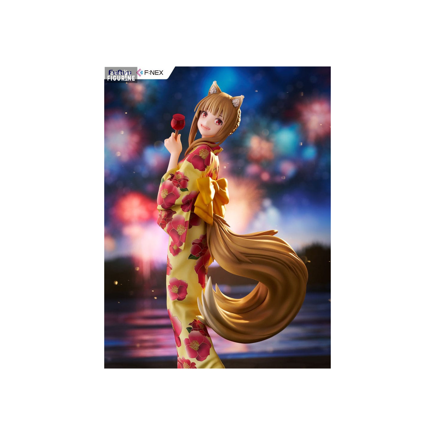 Figurine officielle de Holo, Yukata en PVC mesurant environ 23 centimètres de haut, à l'échelle 1/7. Le fabricant est FuRyu.