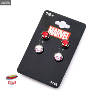 Boucles d'oreilles officielles de Spider-Man et Spider-Gwen en acier inoxydable. Le fabricant est Sales One.