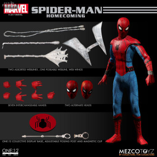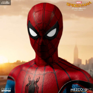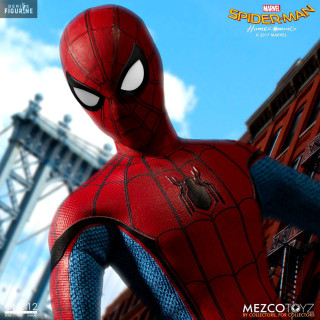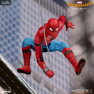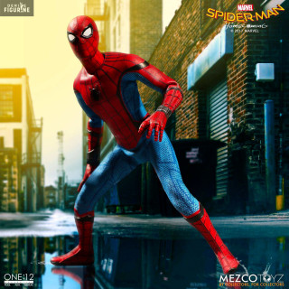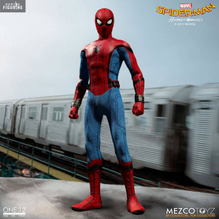 Figurine officielle de Spider-Man mesurant environ 16 centimètres de haut, à l'échelle 1/12. Elle est issue de la collection One:12. Le fabricant est Mezco Toys.