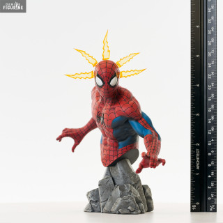Buste officiel de Spider-Man en résine mesurant environ 15 centimètres de haut. Le fabricant est Diamond Select Toys.