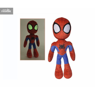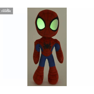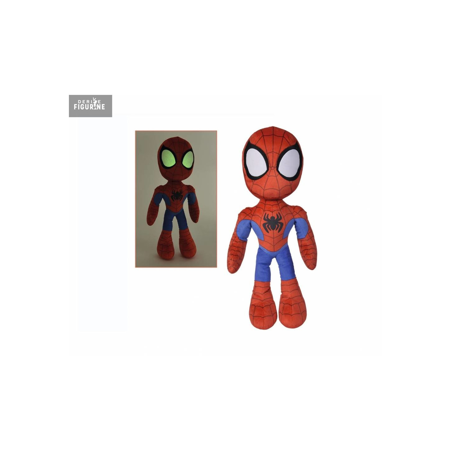 Peluche officielle de Spider-Man mesurant environ 25 centimètres de haut. Elle est issue de la collection Glow In The Dark Eyes. Le fabricant est Simba.