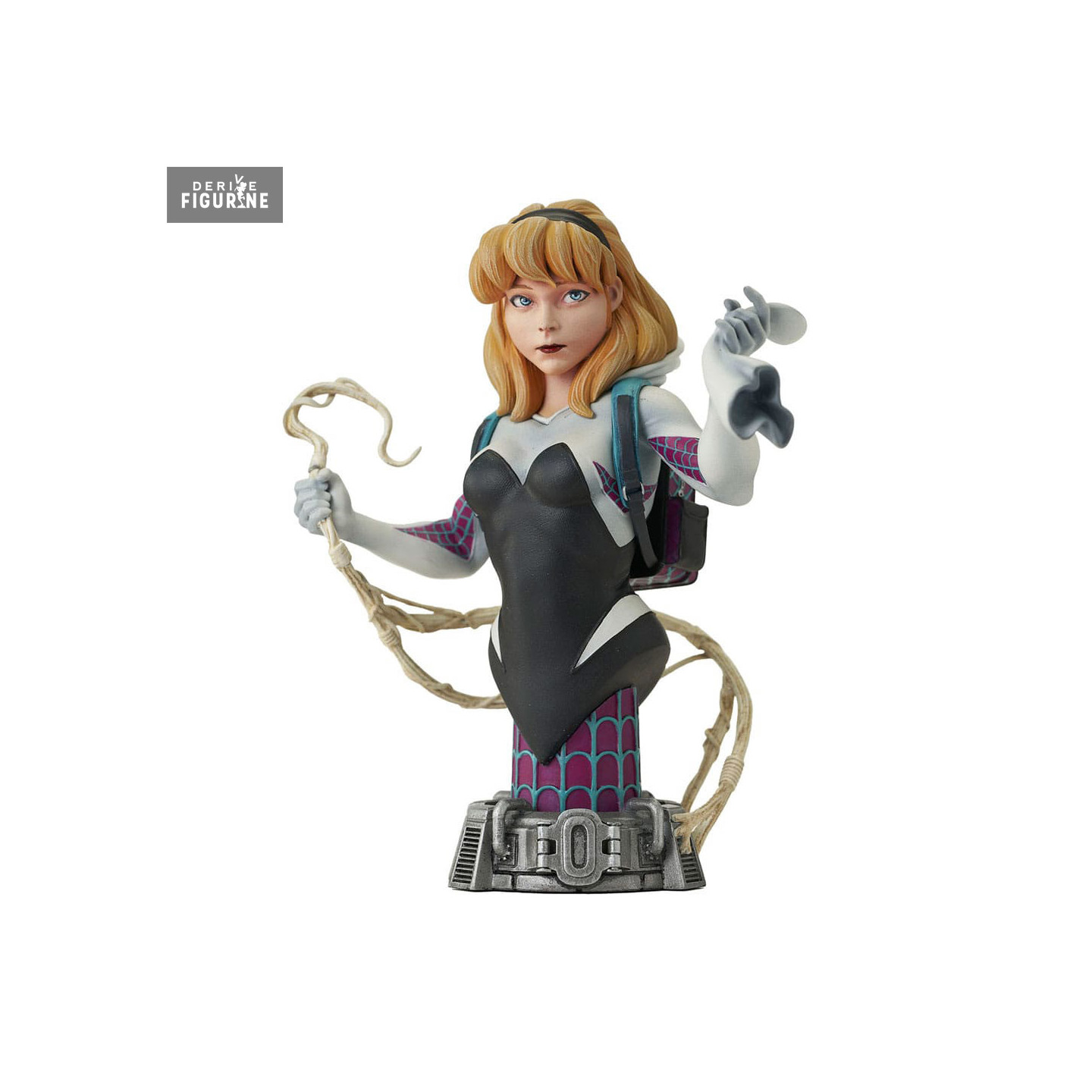 Buste officiel de Ghost Spider en résine d'environ 15 centimètres de haut à l'échelle 1/7. Le fabricant est Diamond Select Toys.