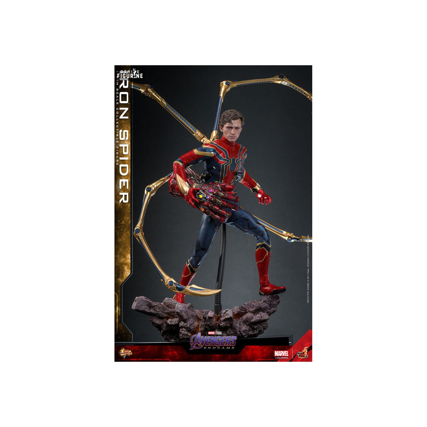 Figurine officielle de Iron Spider mesurant environ 28 centimètres de haut, à l'échelle 1/6. Elle est issue de la collection Movie Masterpiece. Le fabricant est Hot Toys.