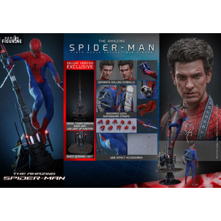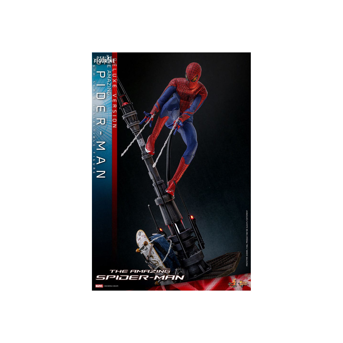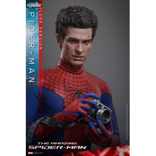 Figurine officielle de Spider-Man, Deluxe mesurant environ 30 centimètres de haut, à l'échelle 1/6. Elle est issue de la collection Movie Masterpiece. Le fabricant est Hot Toys.