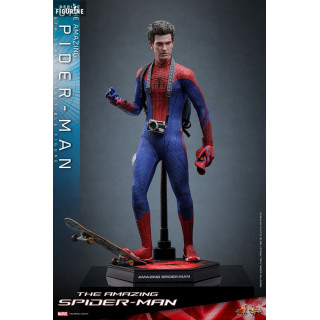 Cette figurine de Spider-Man, réalisée par Hot Toys, fait partie de la prestigieuse collection Movie Masterpiece. Elle est à l'échelle 1/6 et mesure environ 30 centimètres de haut. Chaque détail de son costume emblématique est fidèlement reproduit, offrant un réalisme saisissant. La figurine inclut plusieurs accessoires tels que des effets de toiles, un sac à dos avec des sangles pour skateboard, ainsi qu'une paire d'yeux mobiles pour un réalisme accru. Les multiples options de pose permettent de recréer les scènes les plus iconiques du film, faisant de cette figurine un véritable objet de collection pour les fans de Spider-Man.