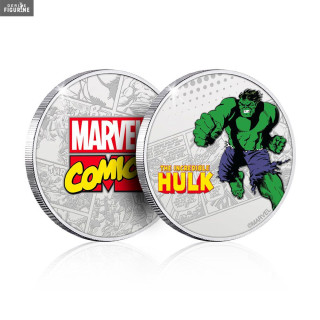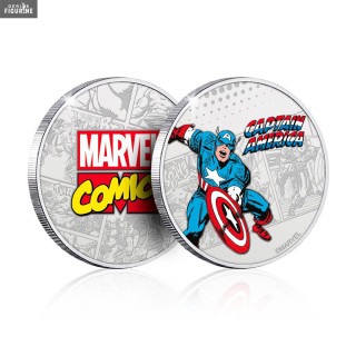 Pièce officielle de Marvel au choix entre Captain America, Thor, Hulk, Iron Man ou Spider-Man mesurant environ 4,4 centimètres de diamètre. Le fabricant est Iron Gut.