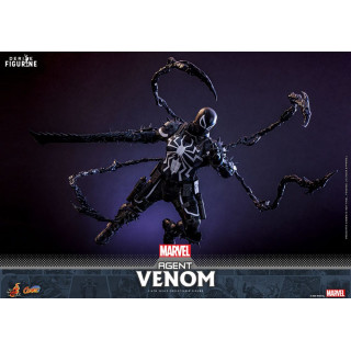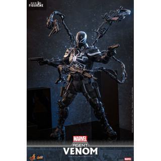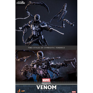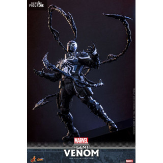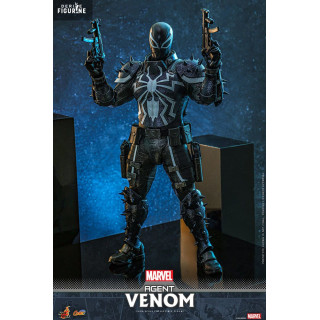 Figurine officielle de Agent Venom mesurant environ 32 centimètres de haut, à l'échelle 1/6. Le fabricant est Hot Toys.