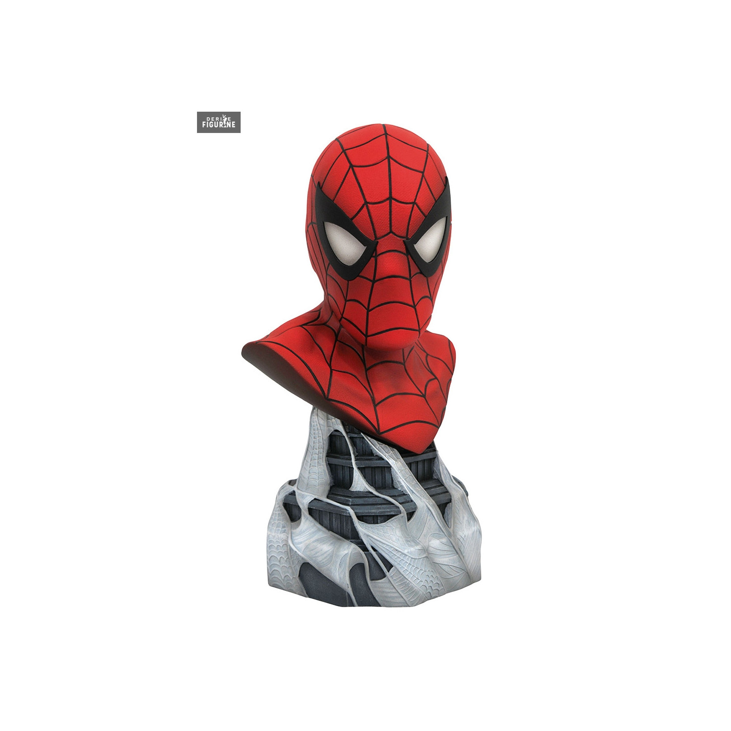 Buste officiel de Spider-Man en résine mesurant environ 25 centimètres de haut, à l'échelle 1/2. Il est issu de la collection Legends in 3D. Le fabricant est Diamond Select Toys.