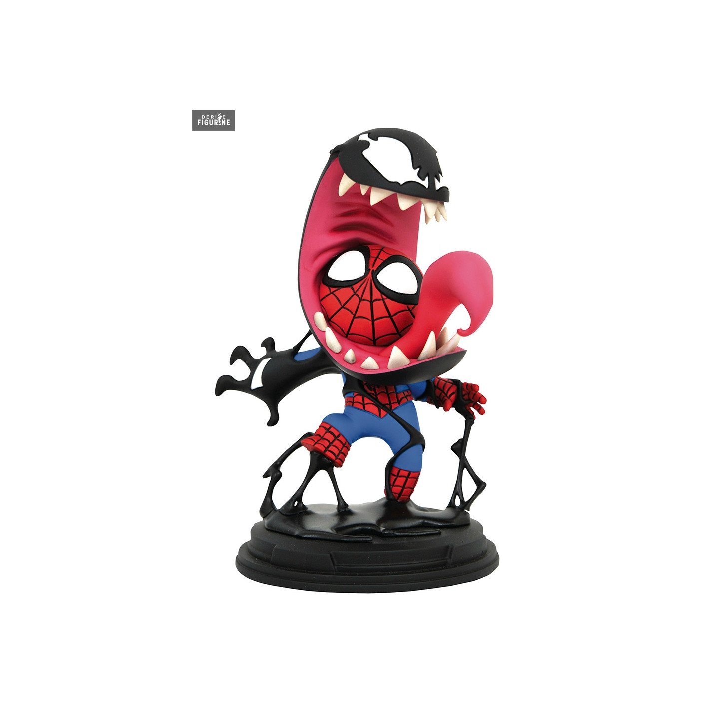 Cette figurine de la collection Marvel Animated nous présente Spider-Man et son ennemi juré Venom dans un petit diorama tout mignon où Venom est encore en train de faire des siennes... Effectivement, le pauvre Peter est en train de se faire infecter par Venom...