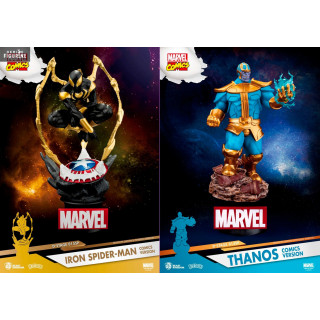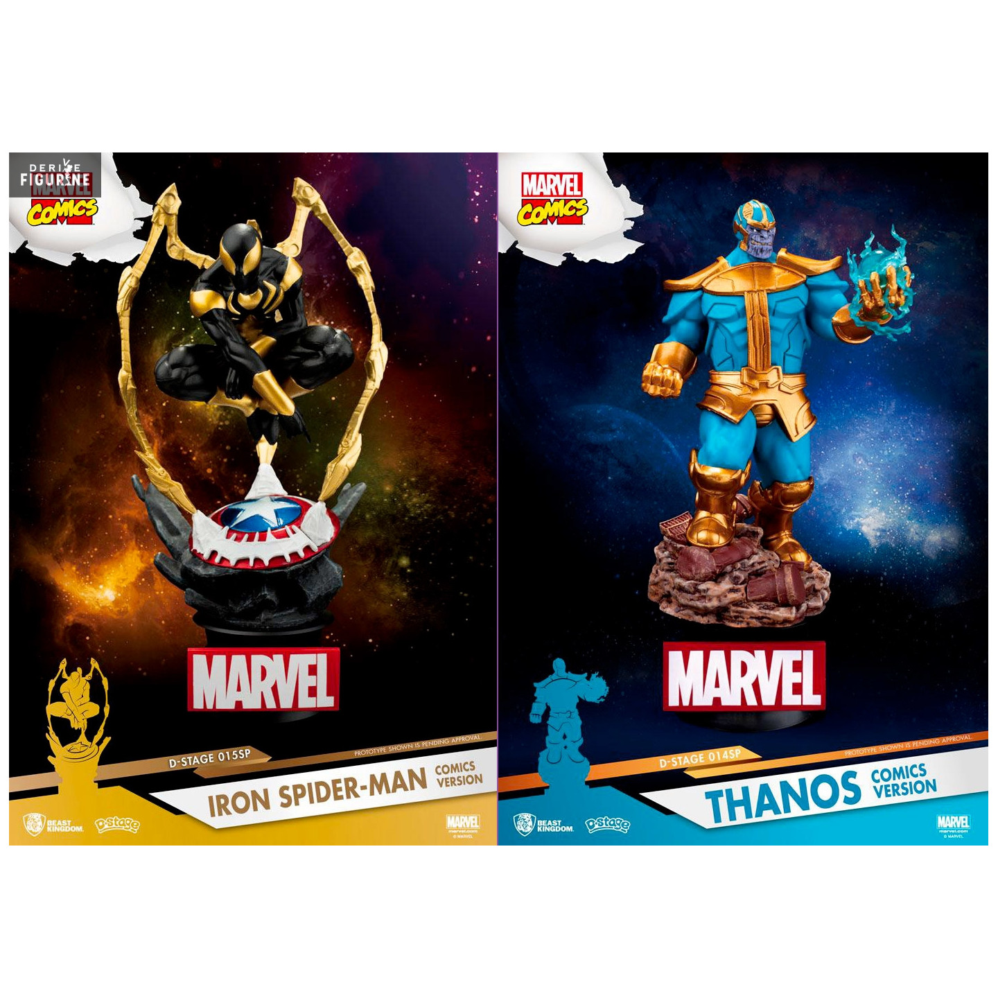 Figurine officielle au choix entre Iron Spider-Man (~16x8x8 cm) ou Thanos (~15x9x8 cm) en PVC. Elle est issue de la collection D-Stage. Le fabricant est Beast Kingdom.