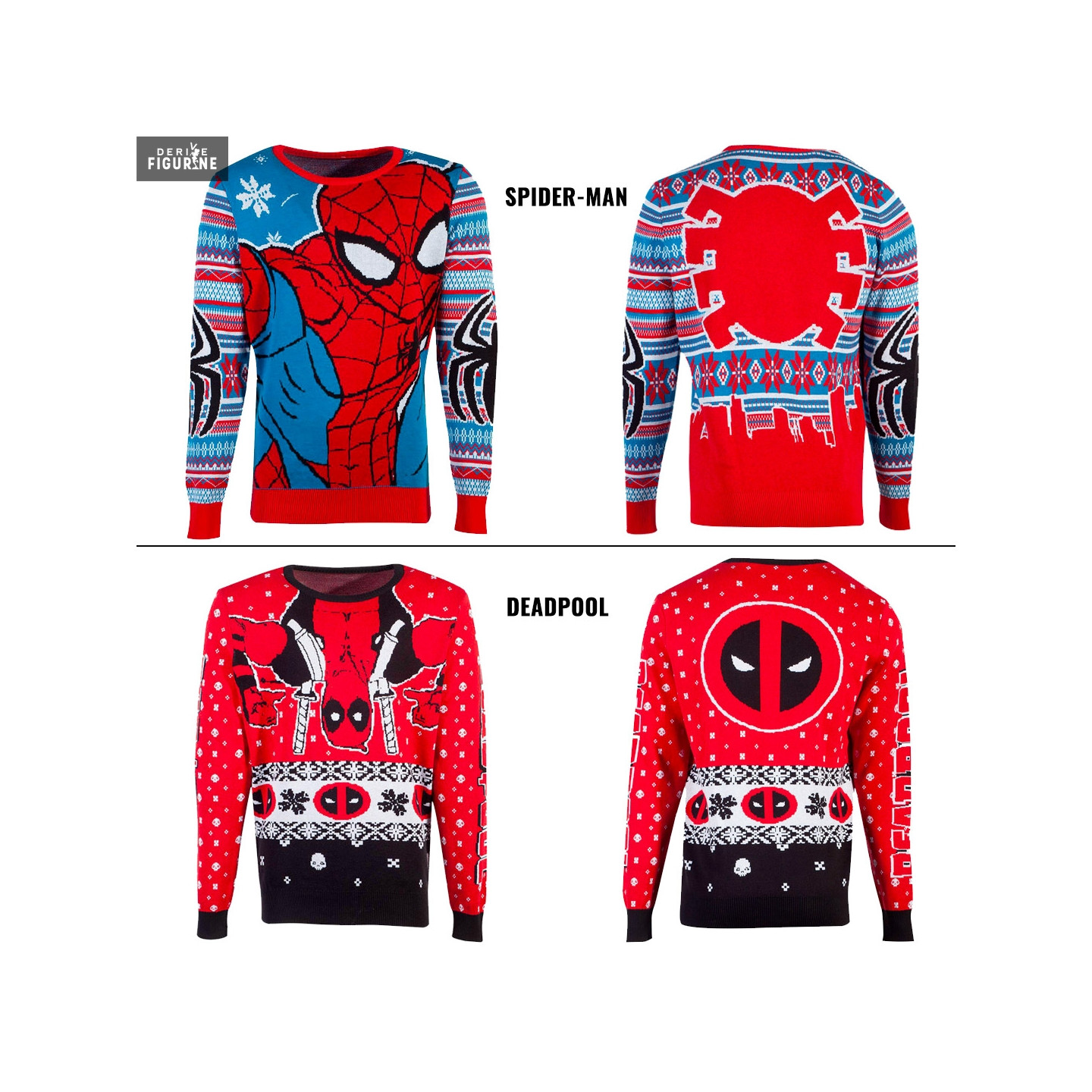A l'approche de Noël, vous pouvez vous offrir des pulls qui collent parfaitement avec le thème. D'une part, nous avons Spider-Man et de l'autre Deadpool. Le tout maintenant est de choisir lequel des deux vous préférez, et bien sûr la taille que vous voulez.
