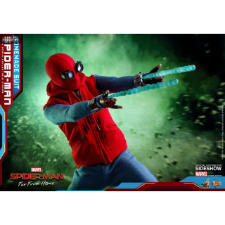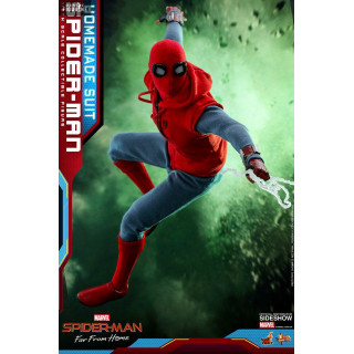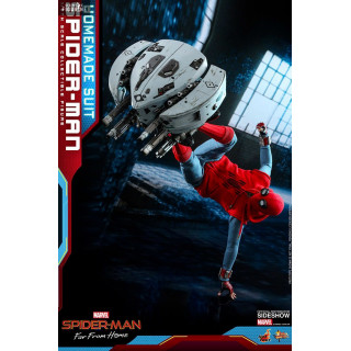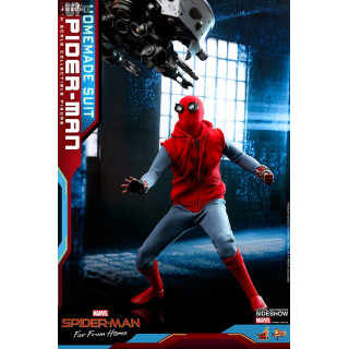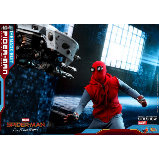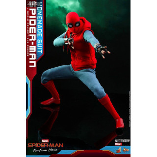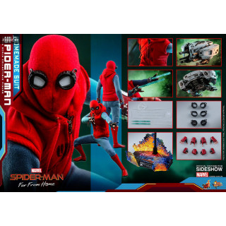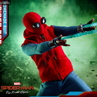 Comme nous avons pu le voir dans le film Far From Home, Spider-Man n'a pas besoin de super costume pour venir à bout de ses ennemis. Son costume fait main lui a suffit pour éliminer Mysterio et ses drones capables de projeter des hologrammes. Comme toujours, les vêtements sont en tissu et il y a de nombreux accessoires fournis avec la figurine.