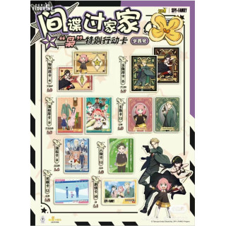 Spy X Family, créé par Tatsuya Endo, raconte l'histoire de Loid Forger, un espion de renom qui doit former une fausse famille pour accomplir une mission secrète. Il adopte une petite fille télépathe, Anya, et se marie avec une tueuse professionnelle, Yor. Ensemble, ils doivent naviguer à travers des défis quotidiens tout en gardant leurs secrets intacts. Chaque carte de ce display capture l'essence et l'humour de cette série unique, rendant hommage à ses personnages et à ses intrigues captivantes.
