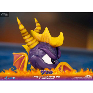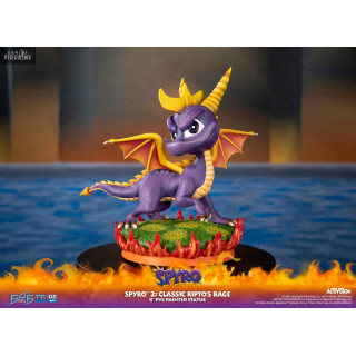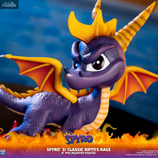Suite aux aventures qu'il a vécu dans le premier jeu, Spyro pensait pouvoir prendre un peu de repos bien mérité. C'était sans compter sur l'arrivée de Ripto et ses acolytes dans son petit coin de paradis. En tout cas, le voici fièrement représenté sur cette statuette avec un socle fait d'herbe et de feu.