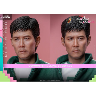 Cette figurine Hot Toys capture avec un réalisme saisissant l’apparence de Seong Gi-hun. À l'échelle 1/6 et mesurant environ 30 cm, elle représente fidèlement son survêtement vert numéroté 456, symbole des joueurs du Squid Game. Son expression déterminée, ainsi que les moindres détails de son visage et de ses vêtements, témoignent du savoir-faire du fabricant. Il tient dans sa main un casque noir, emblème des mystérieux gardes du jeu, ajoutant une touche dramatique à sa posture. Conçue en matières de haute qualité, cette figurine est un incontournable pour tout collectionneur souhaitant revivre l’intensité de la série.