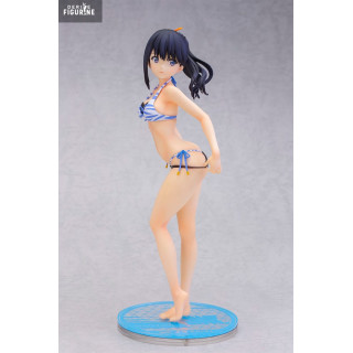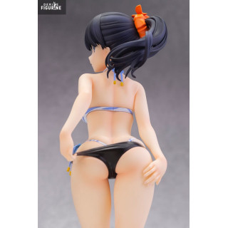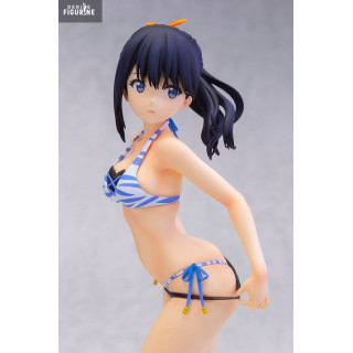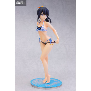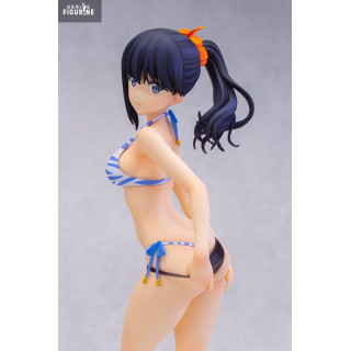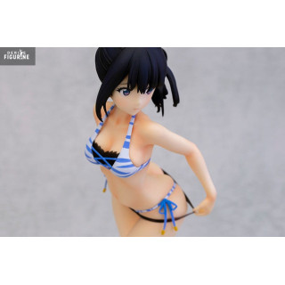 Dans cette version en maillot de bain, Rikka adopte une pose naturelle et pleine de fraîcheur, légèrement tournée comme si elle s’apprêtait à se retourner sur la plage. Vêtue d’un bikini rayé bleu et blanc, rehaussé de petits nœuds et de perles, elle conserve cette élégance discrète qui la caractérise. Sa silhouette élancée, ses jambes légèrement fléchies, son expression calme et ses cheveux noirs attachés en queue de cheval soulignent toute la finesse du personnage.