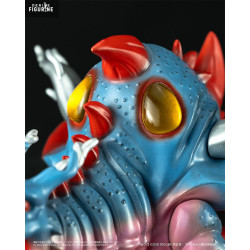 Bien que son histoire précise ne soit pas connue ici, son apparence parle d’elle-même : ce kaiju semble conçu pour semer la panique. Sa gueule hérissée de crocs, ses multiples griffes acérées et son regard fixe renforcent l’idée d’un prédateur féroce et insaisissable. On l’imagine surgir des profondeurs ou d’une autre dimension, provoquant chaos et destruction.