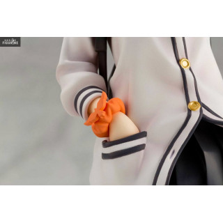 Mesurant environ 24 cm de haut, cette figurine à l’échelle 1/7 est fabriquée par Kotobukiya, un fabricant réputé pour la qualité de ses produits et l'attention portée aux détails. Rikka Takarada est représentée dans son uniforme scolaire, avec sa veste décontractée, une jupe courte et des chaussettes roses qui ajoutent une touche de couleur à l’ensemble. Sa posture naturelle et détendue, avec une main dans la poche et l’autre légèrement posée sur son col, capture parfaitement l'essence de sa personnalité calme et réfléchie.