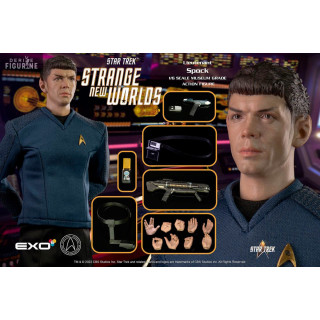 EXO-6 présente la Figurine 1:6 de Spock de Star Trek: Strange New Worlds Rejoignez la nouvelle ère de Star Trek avec la Figurine 1:6 de Spock, inspirée de la série passionnante "Star Trek: Strange New Worlds". Cette création exceptionnelle d'EXO-6 capture l'esprit et la prestance du légendaire personnage vulcain dans une précision remarquable. Spock, interprété par le talentueux Ethan Peck dans Star Trek: Strange New Worlds, est méticuleusement reproduit en figurine 1:6, offrant une expérience de collection inégalée. Détails Époustouflants : Chaque détail du personnage emblématique a été soigneusement sculpté pour capturer la sagesse, la logique et l'intensité de Spock. Des sourcils arqués caractéristiques aux oreilles pointues, cette figurine offre une ressemblance saisissante. Tenue Authentique : Spock est présenté dans son uniforme de Starfleet, fidèle à la série "Star Trek: Strange New Worlds". Chaque pli, chaque écusson et chaque détail de l'uniforme est reproduit avec une précision impressionnante. Accessoires Signature : La figurine est livrée avec une gamme d'accessoires soigneusement conçus, dont le tricordeur et le communicator, permettant aux collectionneurs de recréer des scènes emblématiques de la série. Pose Dynamique : Dotée d'une articulation soigneusement intégrée, la figurine permet une variété de poses dynamiques. Que ce soit dans une attitude stoïque ou prêt à agir, Spock peut être exposé de manière captivante. Fabrication de Qualité Muséale : EXO-6 se consacre à produire des figurines de qualité muséale, et la figurine Spock de Star Trek: Strange New Worlds ne fait pas exception. Chaque élément est inspecté avec une précision digne de Starfleet. Plongez dans l'univers infini de Star Trek avec la Figurine 1:6 de Spock de Star Trek: Strange New Worlds par EXO-6. Une pièce essentielle pour tout collectionneur passionné de Star Trek qui apprécie l'élégance et l'authenticité dans sa collection. Vivez longtemps et prospérez avec cette représentation exceptionnelle de l'emblématique Spock.