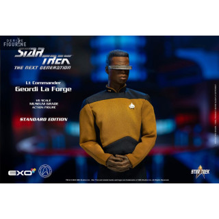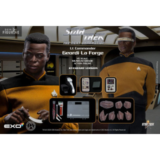 Figurine officielle de Commander Geordi La Forge mesurant environ 28 centimètres de haut, à l'échelle 1/6. Le fabricant est EXO-6.