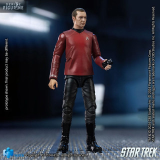 Scotty est représenté avec des détails soignés et une fidélité impressionnante à son apparence dans le film Star Trek de 2009. La collection Exquisite Mini de Hiya Toys offre des figurines de haute qualité dans un format compact, idéal pour les collectionneurs qui veulent apporter l'univers de Star Trek à leur espace de collection.