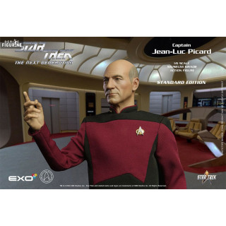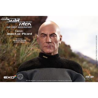 Figurine officielle de Captain Jean-Luc Picard mesurant environ 30 centimètres de haut, à l'échelle 1/6. Le fabricant est EXO-6.