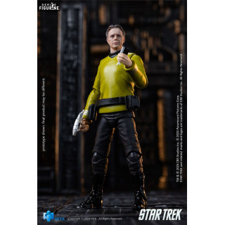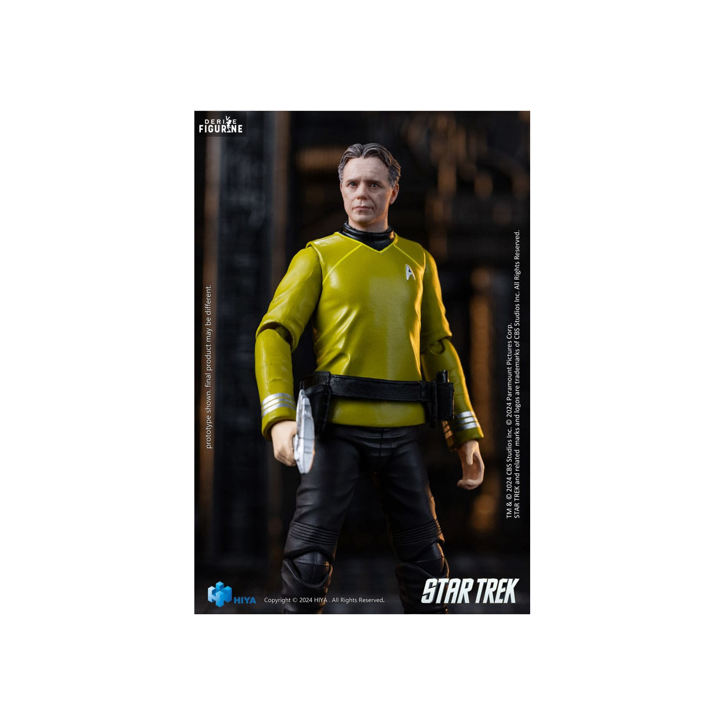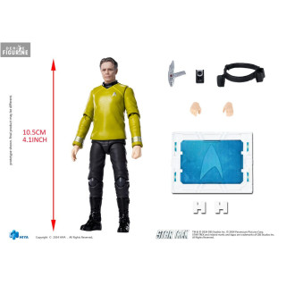 Cette figurine d'environ 10 centimètres, à l'échelle 1/18, représente Christopher Pike dans son uniforme distinctif jaune de la Flotte Stellaire. Issue de la collection Exquisite Mini Series de Hiya Toys, la figurine est dotée d'une articulation détaillée et d'une finition de haute qualité. Elle est accompagnée d'accessoires tels que des mains interchangeables, un communicateur, un phaser et un socle qui ajoute une touche de réalisme à l'ensemble. Le soin apporté aux détails permet de capturer l'essence du personnage, faisant de cette figurine un ajout incontournable pour tout collectionneur de Star Trek.