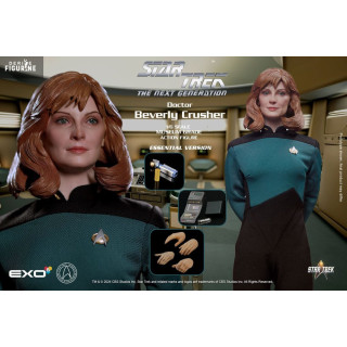 Figurine officielle de Dr. Beverly Crusher (Essential Edition) mesurant environ 27 centimètres de haut, à l'échelle 1/6. Le fabricant est EXO-6.