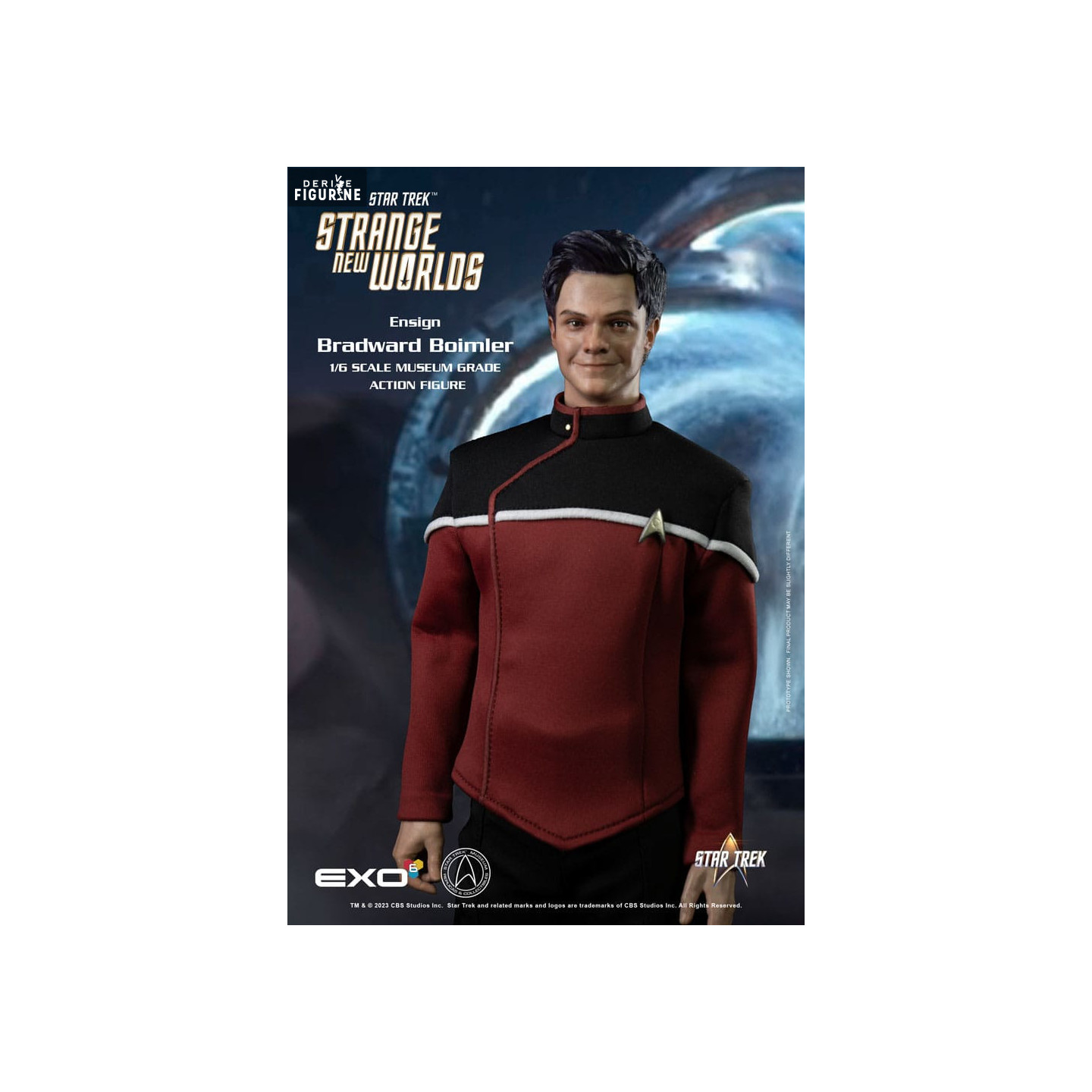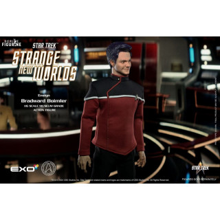 Figurine officielle de Ensign Bradward Boimler mesurant environ 30 centimètres de haut, à l'échelle 1/6. Le fabricant est EXO-6.