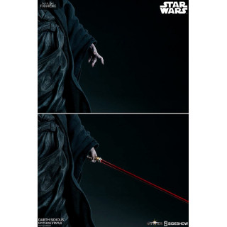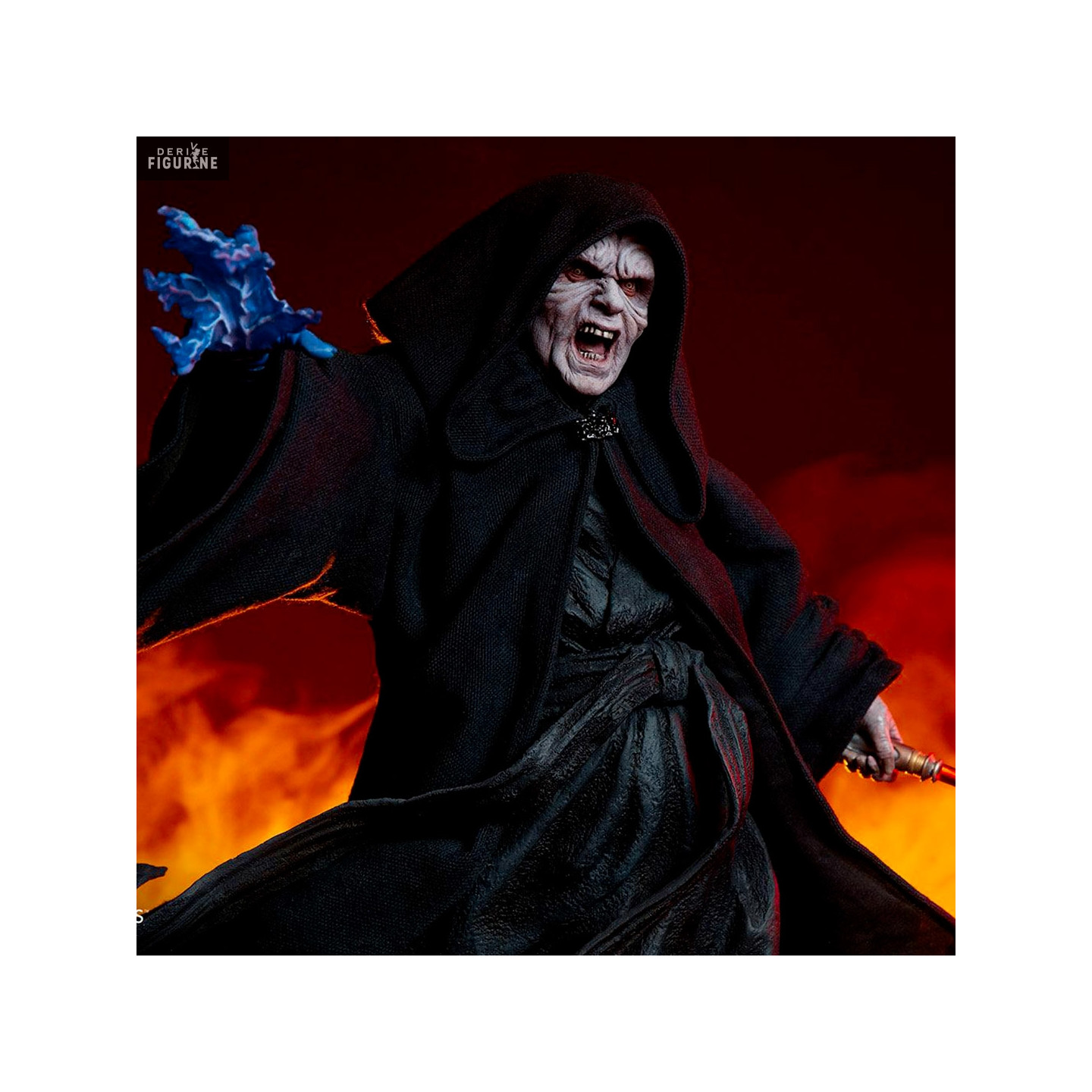 Dark Sidious, ou Palpatine est un personnage important dans la première trilogie de Star Wars. Son but est d'anéantir les Jedi afin de faire régner l'Ordre Sith. Alors si vous aimez le côté sombre de ce personnage, vous allez adorer cette statuette qui est en plus vendue avec des mains interchangeables.