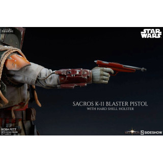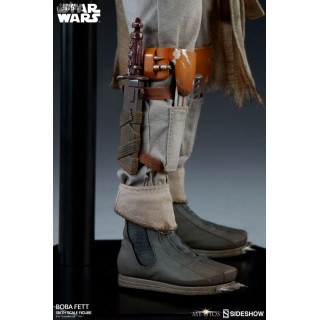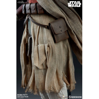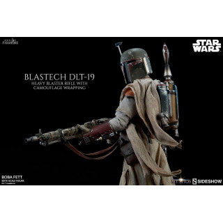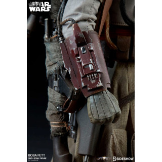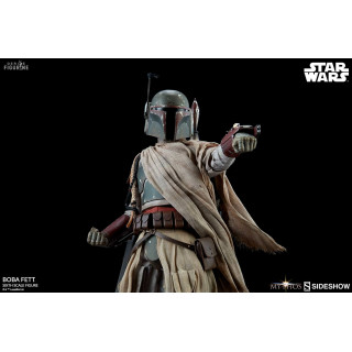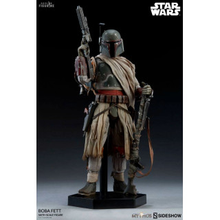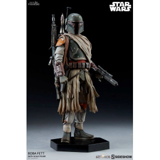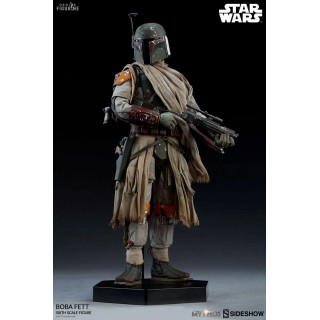 Figurine officielle de Boba Fett mesurant environ 30 centimètres de haut, à l'échelle 1/6. Le fabricant est Sideshow Collectibles.