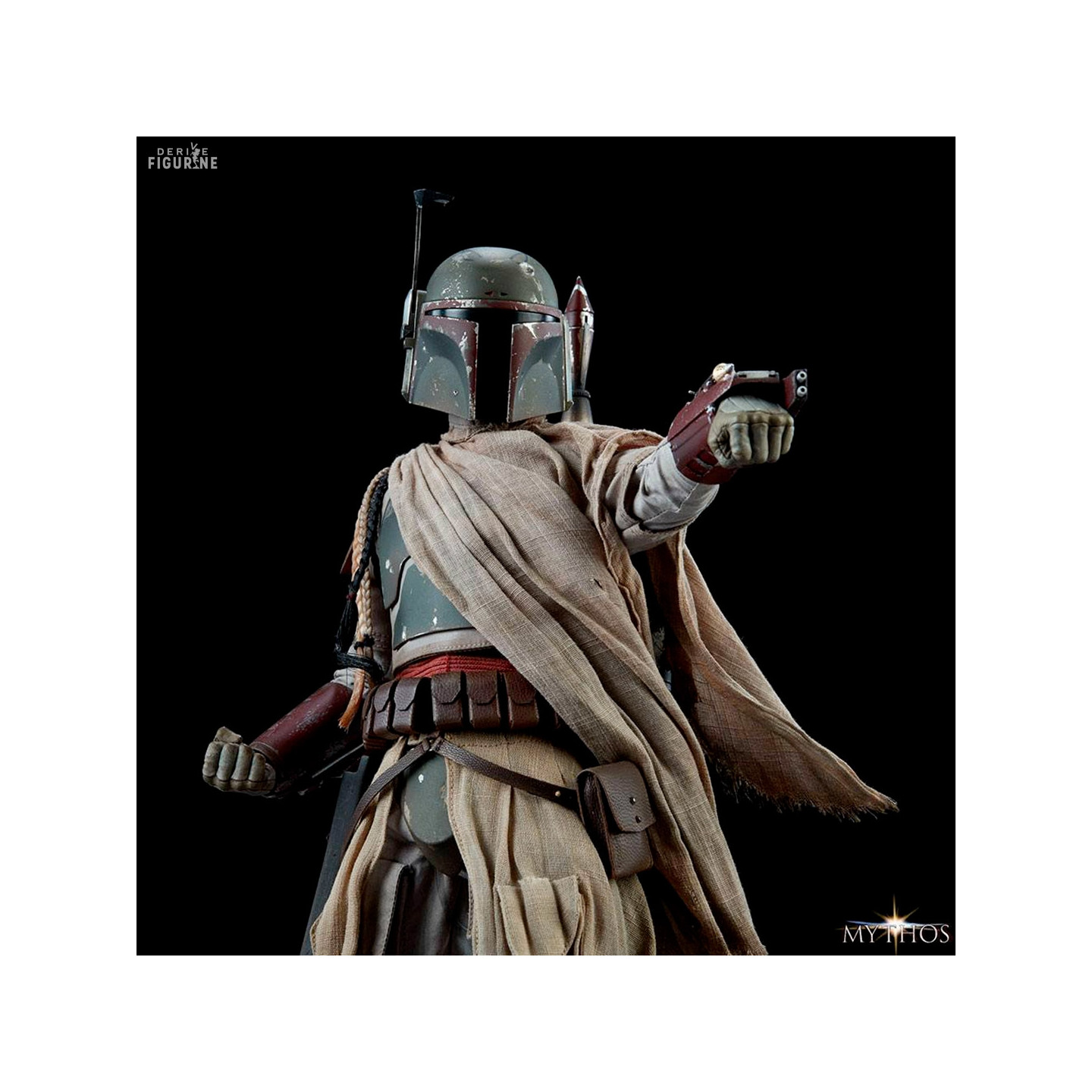 Boba Fett est connu dans toute la galaxie pour être un chasseur de primes extrêmement doué. Comme vous pouvez le voir, il emporte toujours avec lui un attirail assez conséquent, mais cela joue sans doute dans la réussite de ses missions. Il a donc un couteau, diverses armes à feu comme un pistolet blaster et même des sabres lasers qu'il garde en tant que trophées. Enfin, sachez que ses vêtements sont en tissu et qu'il s'agit d'une édition limitée.