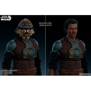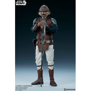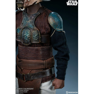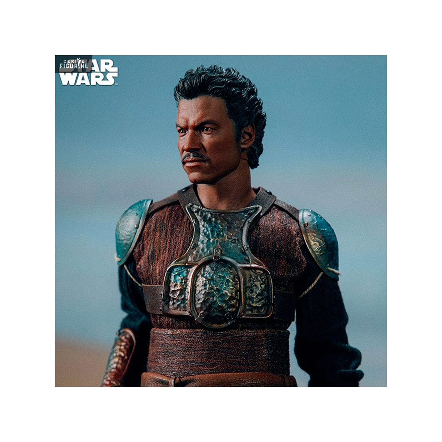 Figurine officielle Lando Calrissian mesurant environ 30 centimètres de haut, à l'échelle 1/6. Le fabricant est Sideshow Collectibles.