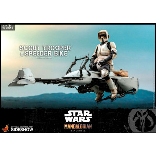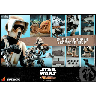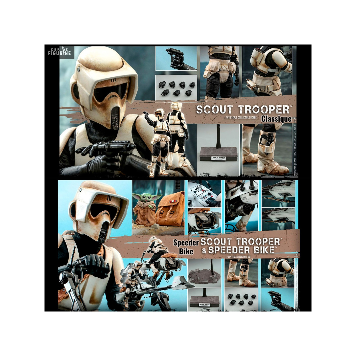 Figurine officielle du Scout Trooper (~30 cm) au choix entre la version Classique ou Speeder Bike, à l'échelle 1/6. Le fabricant est Hot Toys.