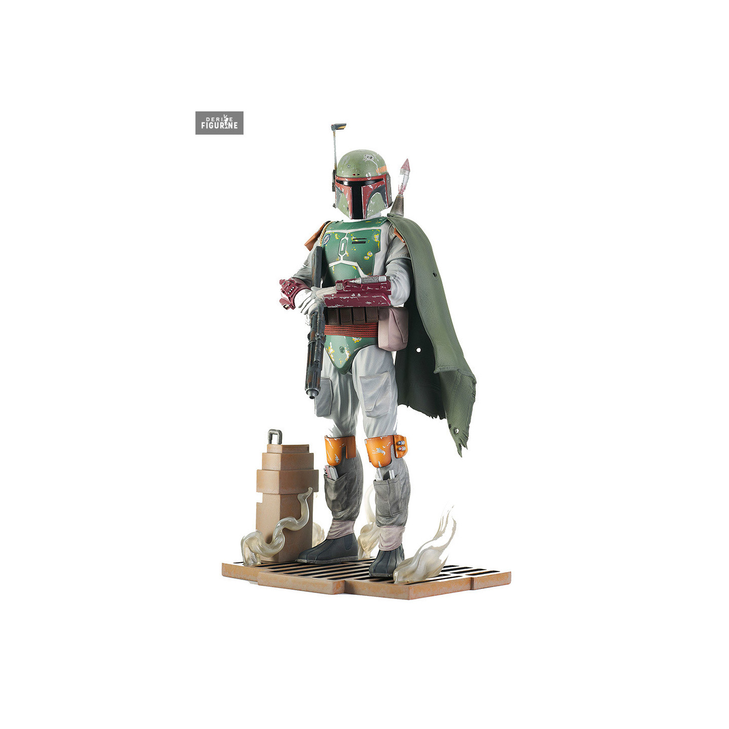 Jango Fett est celui qui a servi de modèle pour de nombreux clones mais il a pris l'un d'eux sous son aile, comme si c'était son propre fils et il s'agit donc de Boba Fett. Il deviendra un chasseur de primes redoutable avant de disparaître sur Tatooine. Sur cette statuette, on peut le voir avec un blaster dans les mains, donc méfiez-vous.