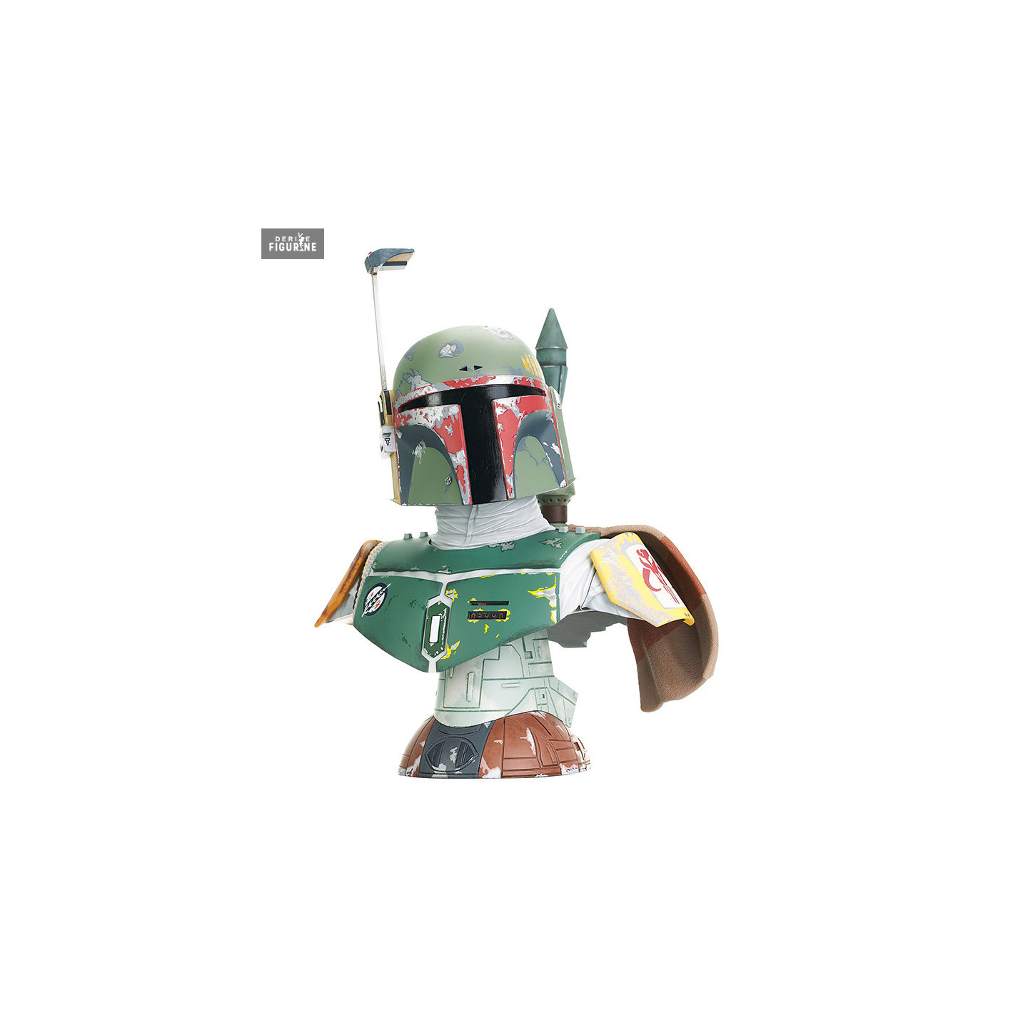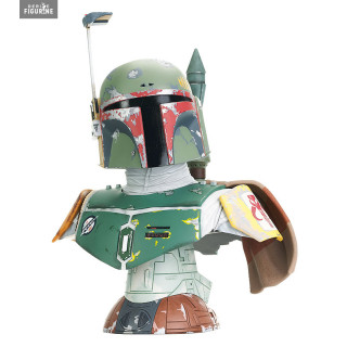 Buste officiel de Boba Fett en résine mesurant environ 25 centimètres de haut, à l'échelle 1/2. Il est issu de la collection Legends in 3D. Le fabricant est Diamond Select Toys.