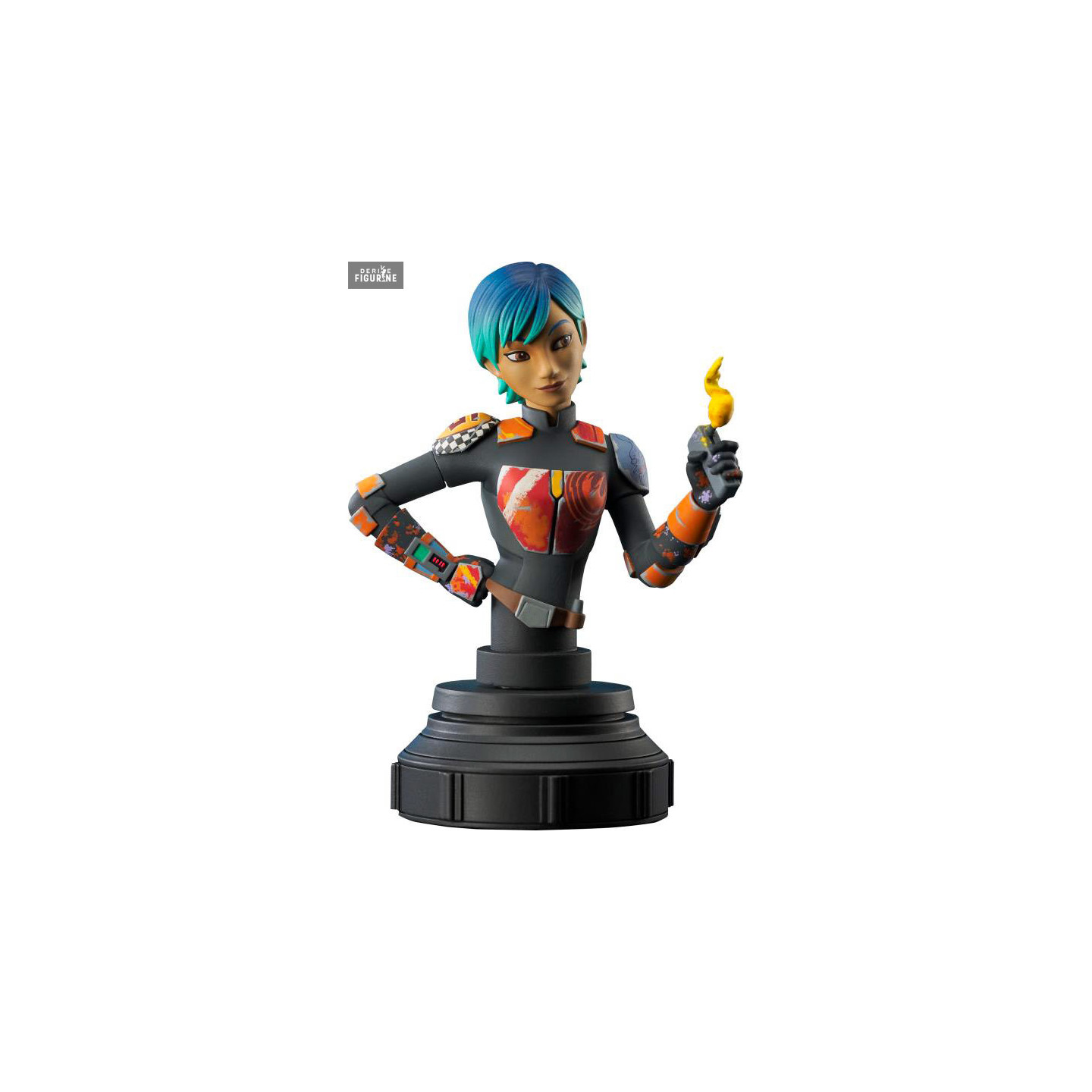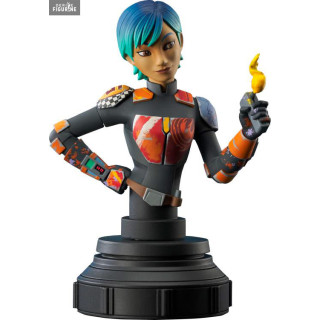 Buste officiel de Sabine Wren en résine mesurant environ 15 centimètres de haut, à l'échelle 1/7. Le fabricant est Diamond Select Toys.