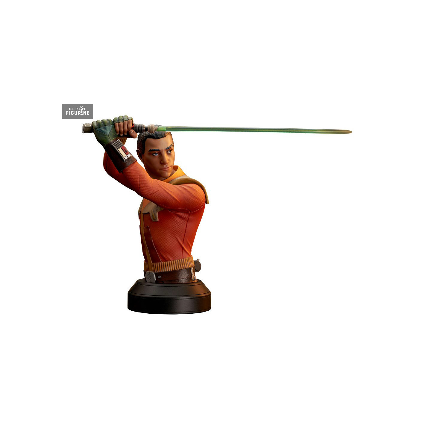 Ezra Bridger est le nouveau membre de l'équipe Ghost. Jedi en formation, on le voit brandir son sabre laser vert. Ce buste possède de très beaux détails, vous pourrez apercevoir la texture de ses habits et de ses accessoires, accompagné d'un socle sobre et de bonne qualité.