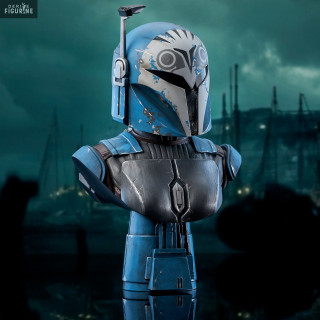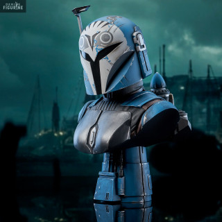Buste officiel de Bo-Katan Kryze en résine mesurant environ 25 centimètres de haut, à l'échelle 1/2. Le fabricant est Diamond Select Toys.