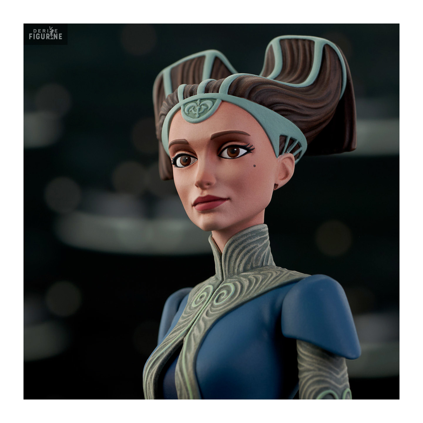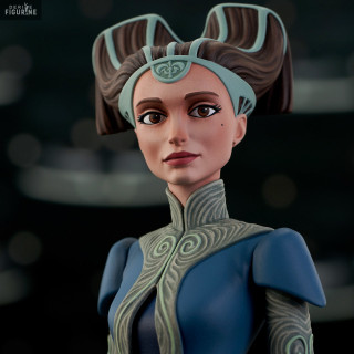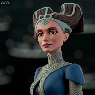 Buste officiel de Padme Amidala en résine mesurant environ 17 centimètres de haut, à l'échelle 1/7. Il est issu de la collection Animated Mini Bust. Le fabricant est Diamond Select Toys.